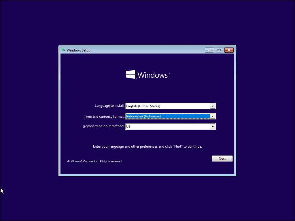 Pilihlah bahasa yang digunakan untuk proses instalasi. Pilih English (United States).