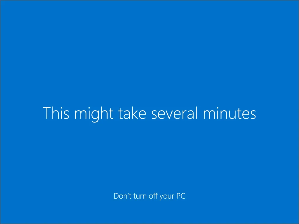 Setelah itu, Anda perlu menunggu Windows untuk melakukan penyesuaian sistem hingga selesai. Mungkin akan ada beberapa tulisan atau pesan yang muncul di layar ketika proses ini.