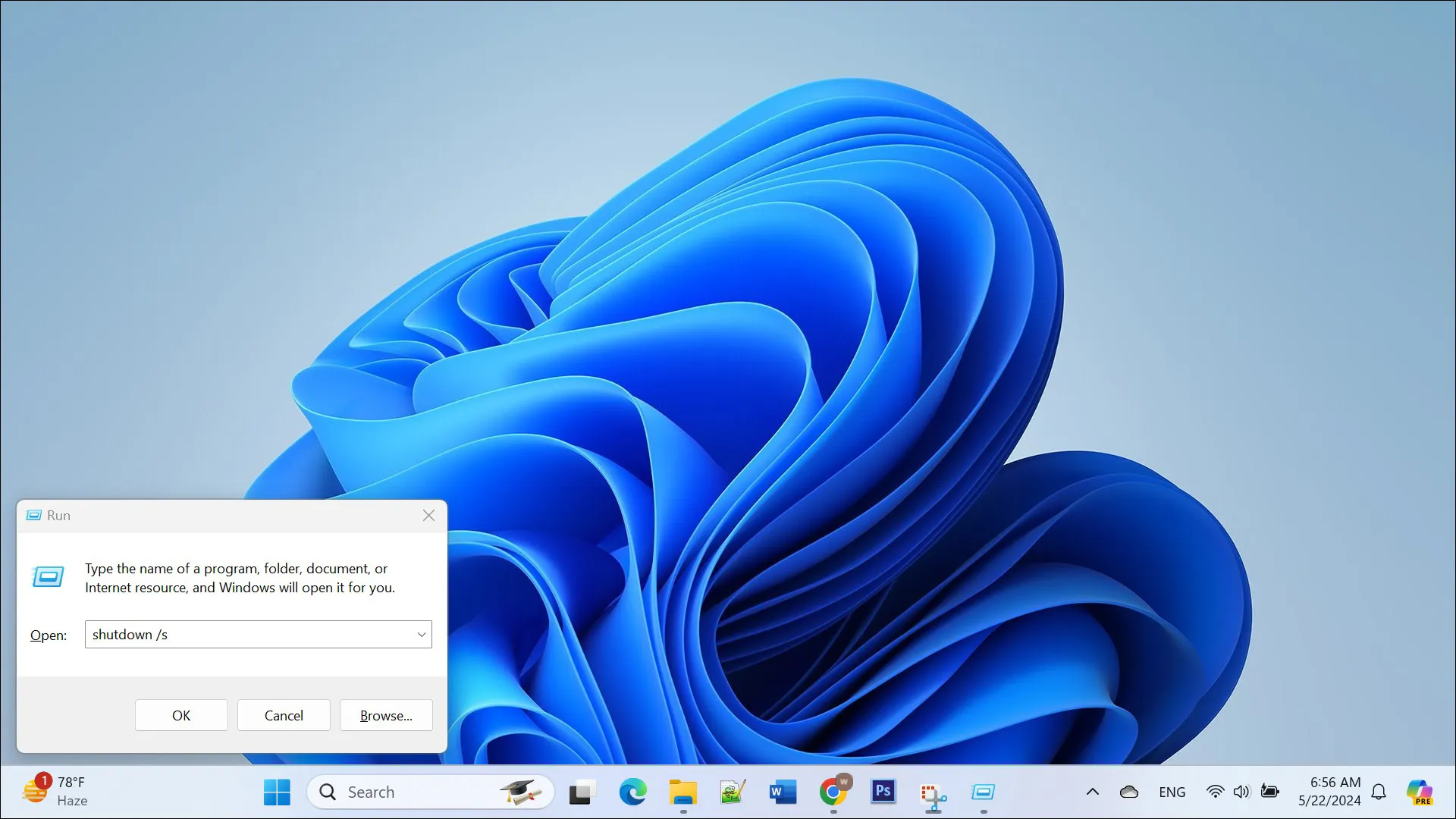 Ketika perintah command run muncul, isi dengan shutdown /s kemudian klik Enter dan laptop Anda akan mati setelahnya. Karena perintah ini langsung mengeksekusi perintah melalui Power shell dan akan memberi Anda peringatan bahwa eksekusi proses shut down akan dilakukan dalam hitungan detik saja.