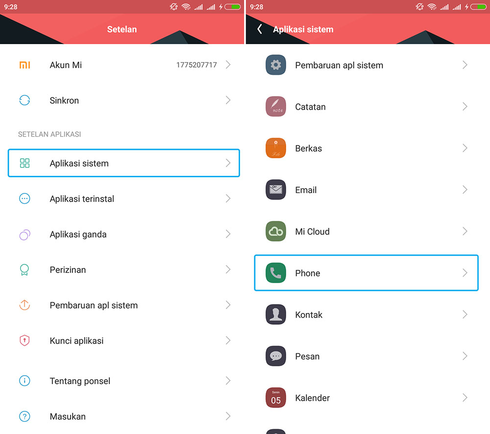1. Langkah pertama, anda bisa masuk pada menu โSetelanโ. Kemudian anda pilih โAplikasi Sistemโ, lalu pilih โPhoneโ.