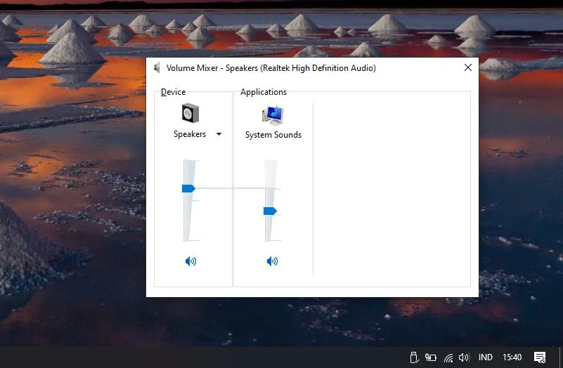 Terkadang beberapa pengguna lupa kalau pengaturan speaker/ sound dalam kondisi mute (Volume 0%). Meskipun hal ini jarang terjadi, namun Anda tetap perlu melakukan pengecekan. Pada Windows 10, setelah install driver Audio, ada beberapa opsi untuk Volume Speaker. Coba cek Volume Speaker Anda, kalau perlu Anda bisa atur hingga 100% untuk melihat hasilnya.