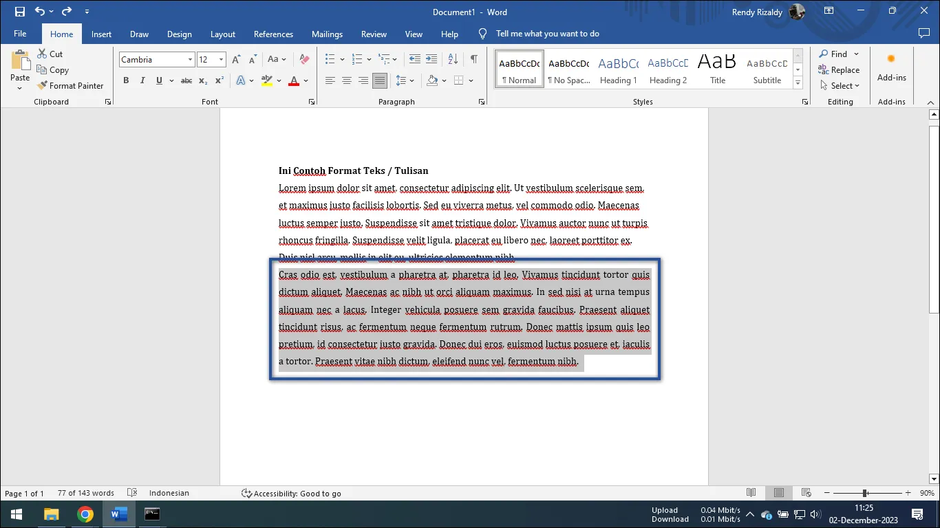 Pilih teks atau kalimat yang ingin Anda ubah, lalu klik ikon Align Justify atau bisa menggunakan keyboard dengan menekan tombol CTRL + J.