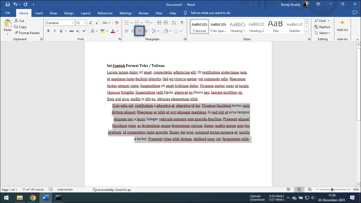 Untuk membuat teks rata kanan, ikuti langkah-langkah berikut.
