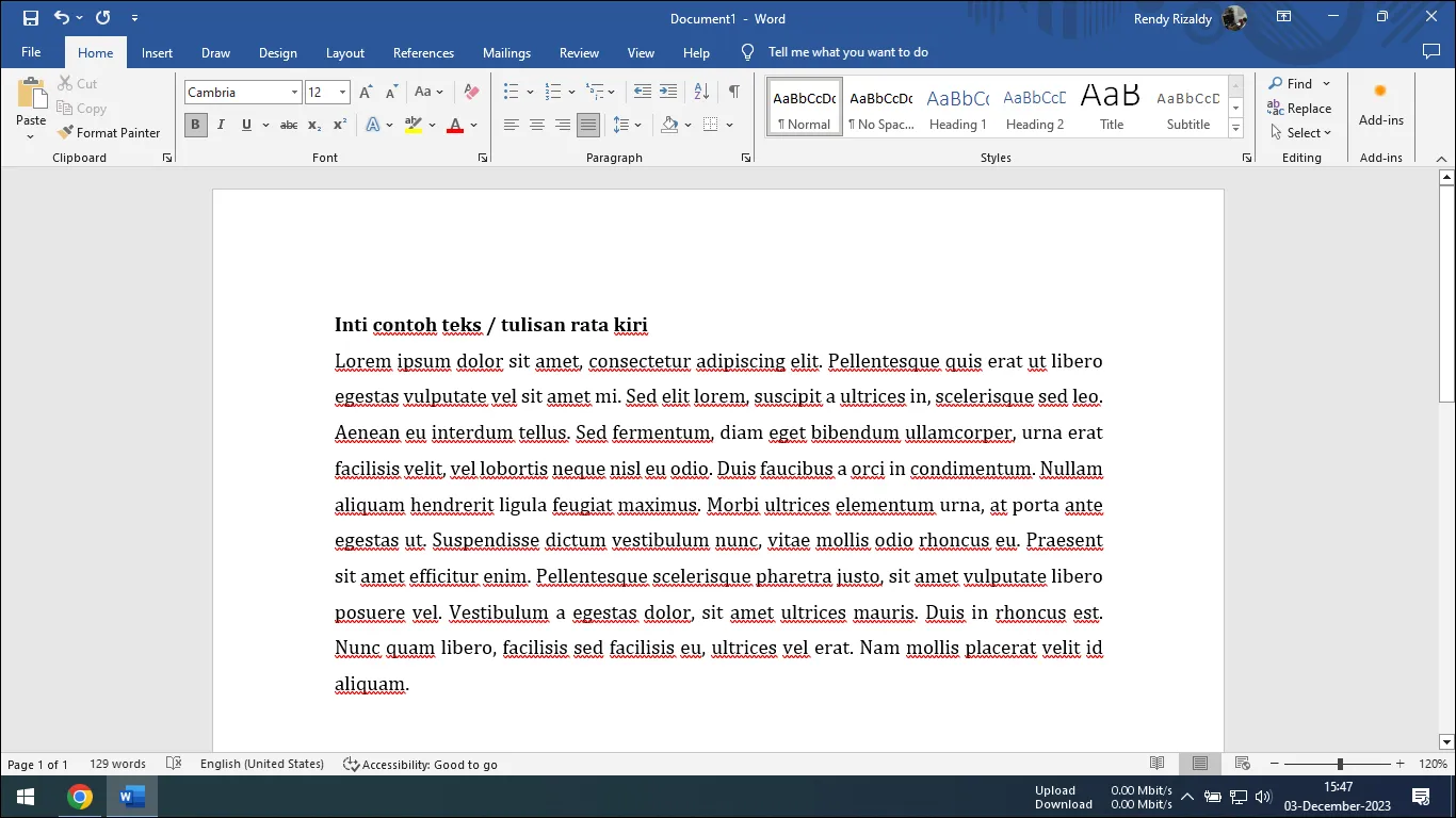 Pilih teks atau kalimat yang ingin Anda ubah, lalu klik ikon Align Left atau bisa menggunakan keyboard dengan menekan tombol CTRL + L.