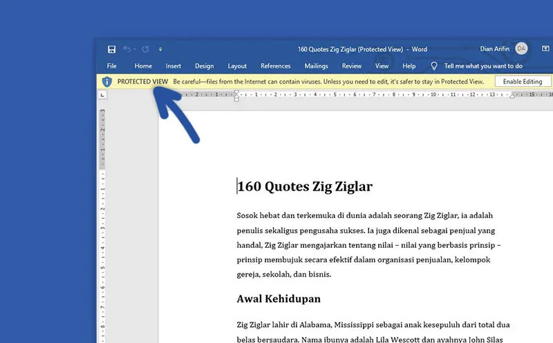 Untuk melihat hasilnya, Anda bisa membuka file word hasil download atau kiriman. Dan nantinya Anda tidak akan melihat lagi pesan Protected View seperti sebelumnya.