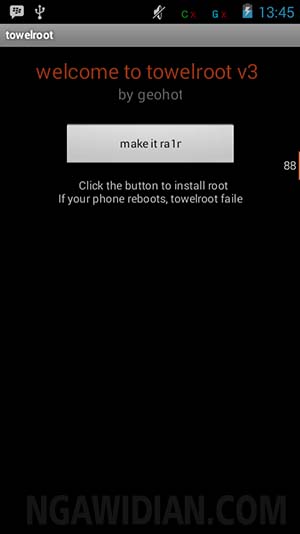2. Install dan buka aplikasi tersebut. kemudian langsung saja anda tap โ€œMake it ra1tโ€ untuk memulai Proses root.