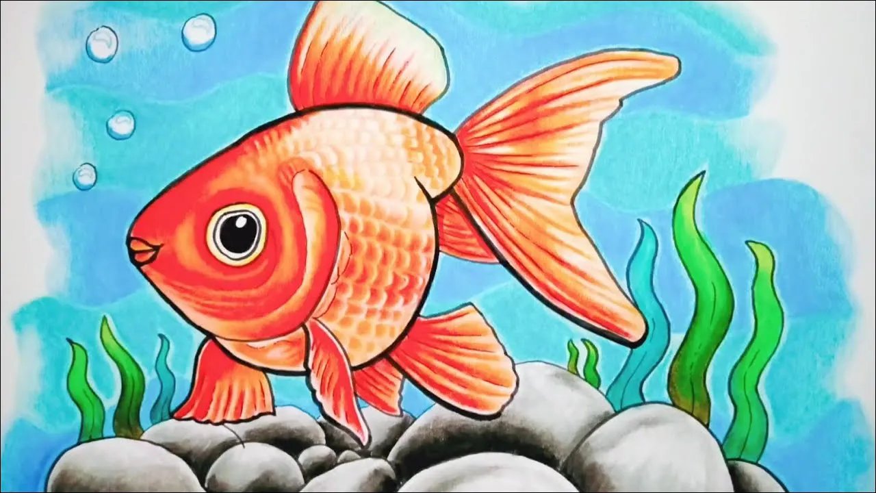 Menggambar ikan mas ukuran sedang. Kanal YouTube ORY CHANNEL