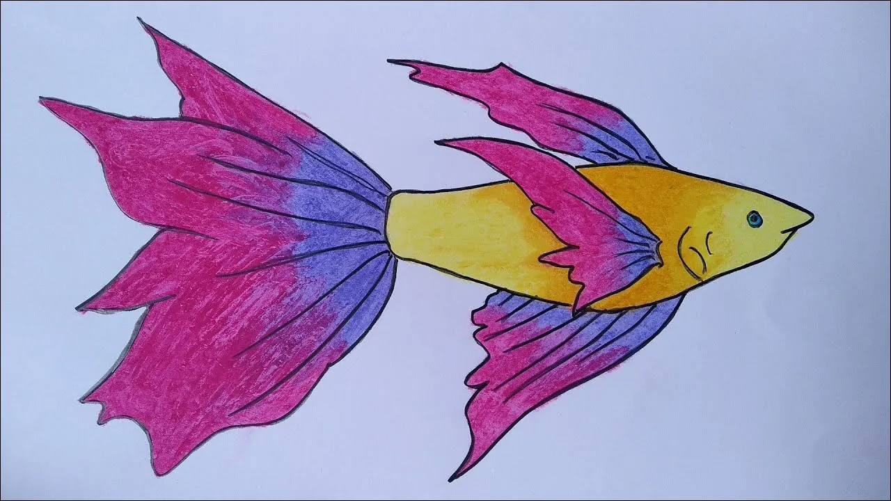 Menggambar dan mewarnai ikan hias dengan ekor panjang. Kanal YouTube ORY CHANNEL