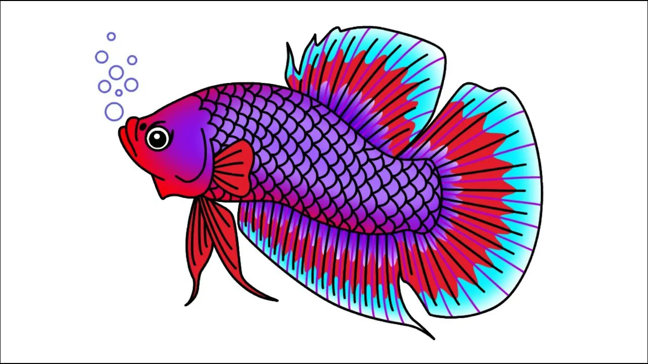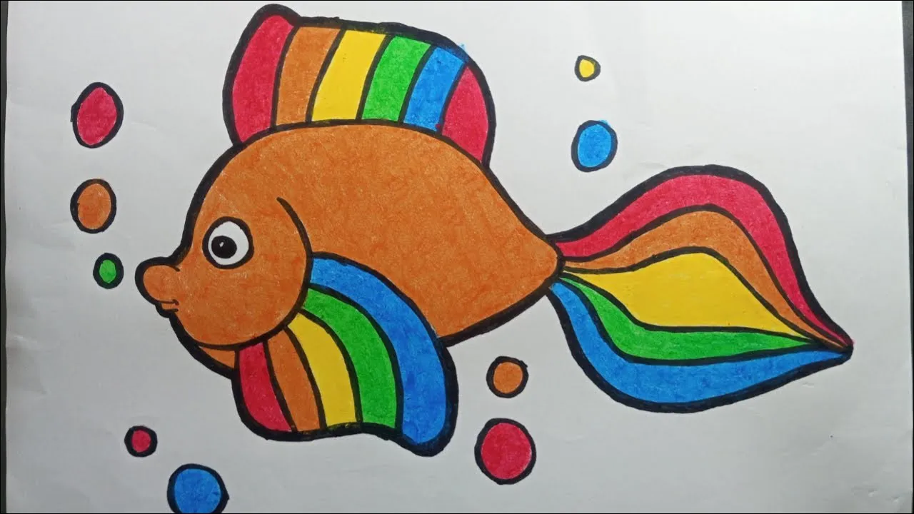 Gambar ikan lucu warna-warni. Kanal YouTube Mari Belajar Menggambar