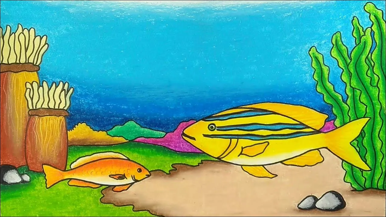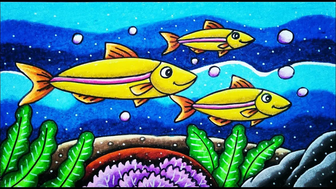 Menggambar dan mewarnai ikan hias di laut. Kanal YouTube Hobiku Menggambar