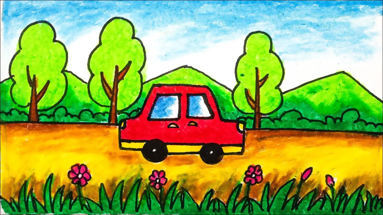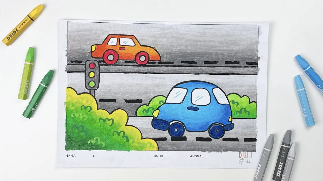 Gunakan garis-garis sederhana dan bentuk dasar untuk membuat gambar mudah diikuti. Pilih warna cerah dan kontras untuk menarik perhatian. Berikan elemen-elemen kecil seperti bunga atau awan di sekitar mobil untuk menambahkan sentuhan spesial.