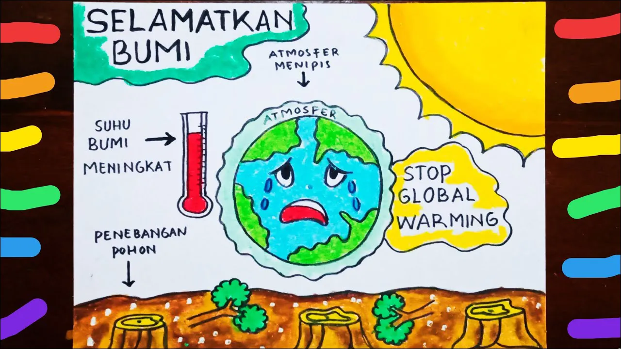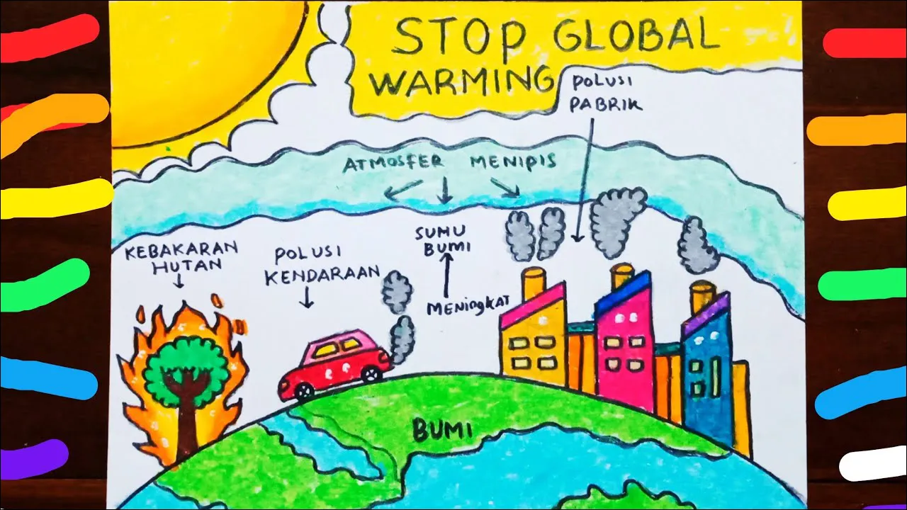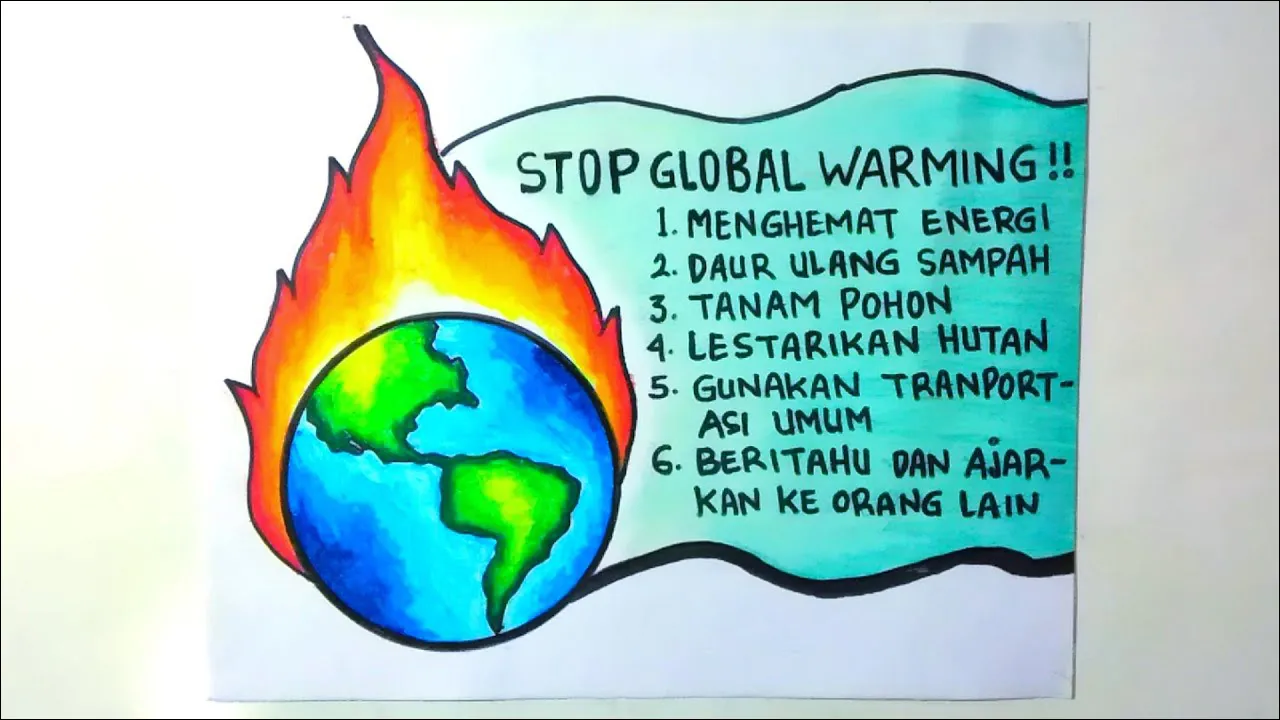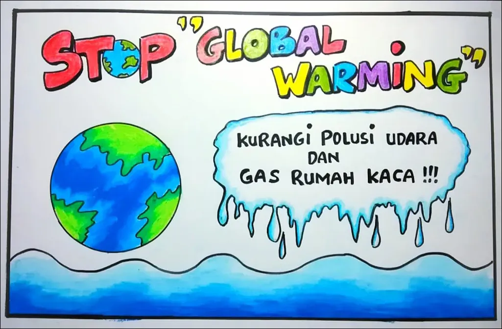 Berikut kumpulan contoh poster pemanasan global yang mudah digambar dan ditiru anak SD, SMP, SMA!