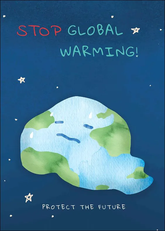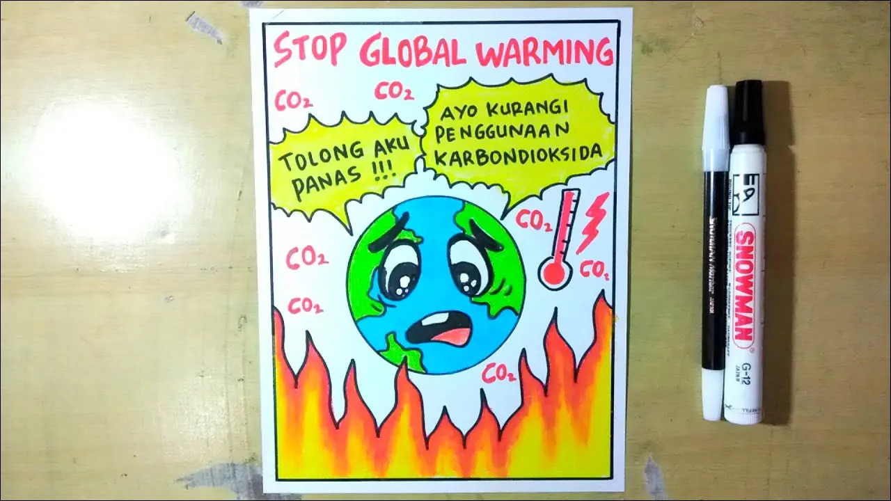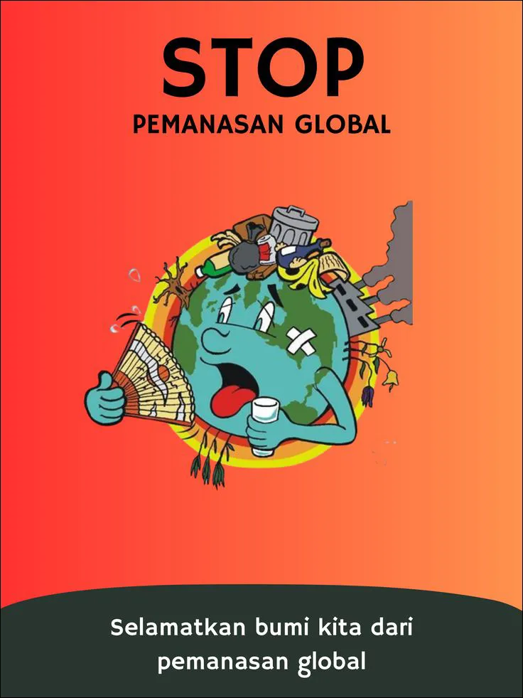 Setiap poster dalam kumpulan ini memberikan visualisasi yang kuat tentang dampak dari pemanasan global serta pesan-pesan penting untuk mengurangi dampak negatifnya. Langsung saja, berikut adalah beberapa pilihan posternya yang bisa kamu tiru dan gambar sendiri: