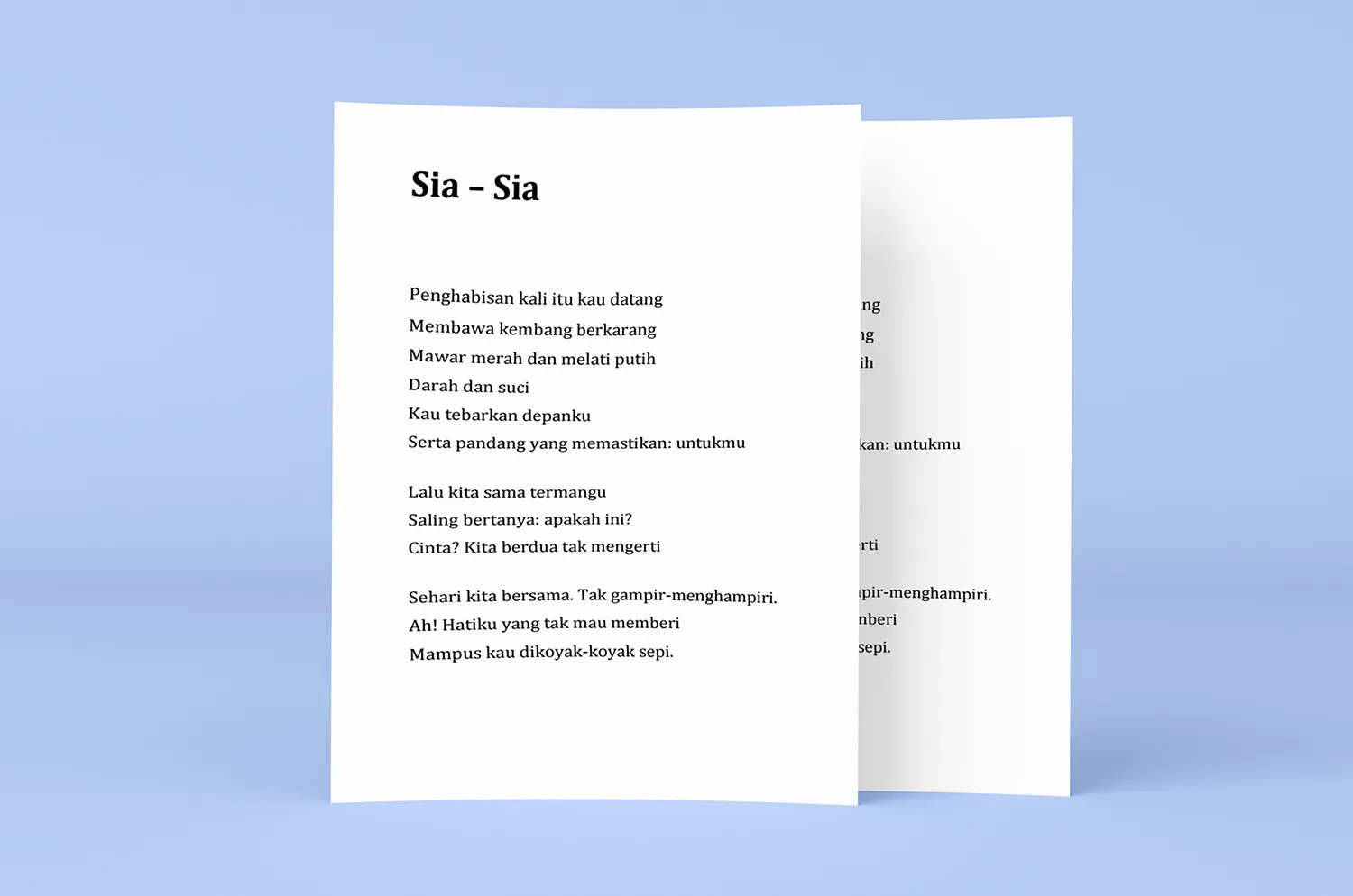 Puisi merupakan bentuk karya sastra yang menggunakan bahasa khusus dan struktur yang berbeda untuk mengungkapkan sebuah gagasan, emosi dan pengalaman. Puisi menggabungkan unsur estetika, ritme dan keindahan rangkaian kata-kata untuk menciptakan sebuah karya sastra yang lebih dari sekadar rangkaian kalimat.