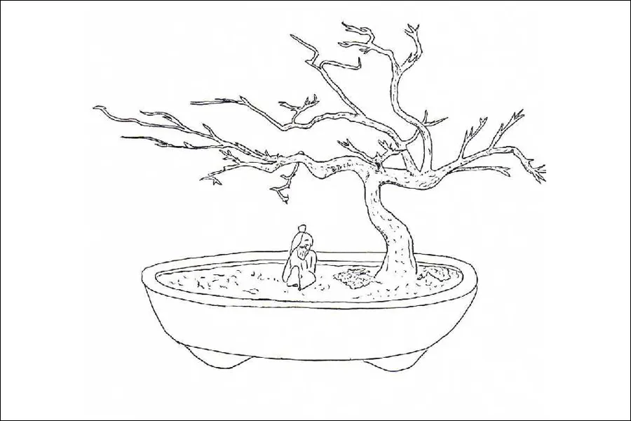 Bonsai sering digambarkan dalam pot kecil untuk menunjukkan konsep miniaturisasi. Ini menciptakan kesan pohon yang matang dan kuat dalam skala yang lebih kecil, menciptakan harmoni visual yang menarik.