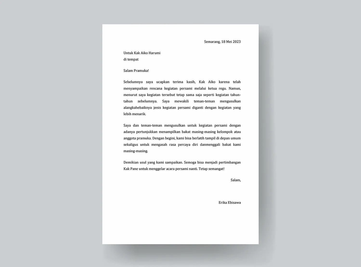 Tanggal: Tuliskan tanggal penulisan surat di sebelah kanan atas.
