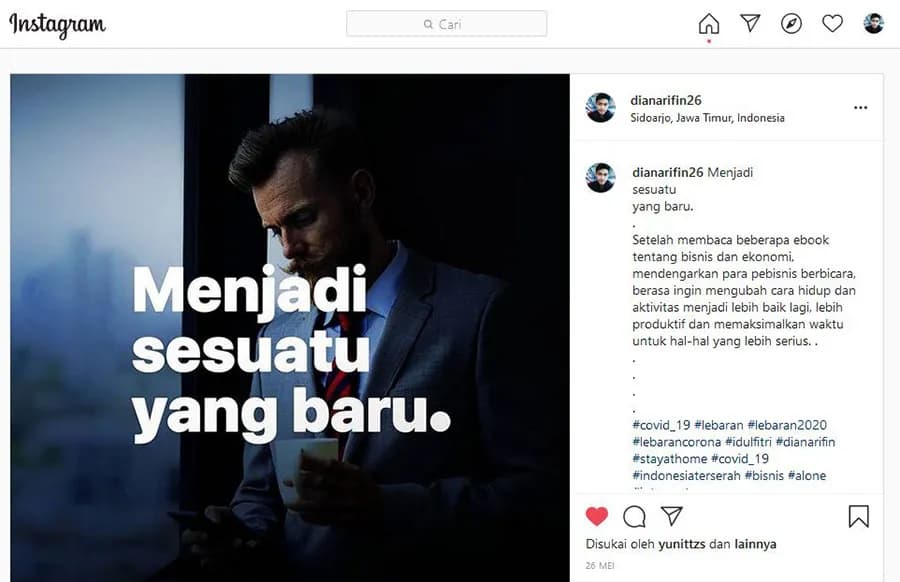 *KET: Selain melalui browser smartphone, anda juga dapat mencobanya lewat browser komputer. Gunakan mouse atau trackpad untuk menyeleksi teks caption dan komentar Instagram. Copy dengan CTRL + C dan pastekan dengan CTRL + V.