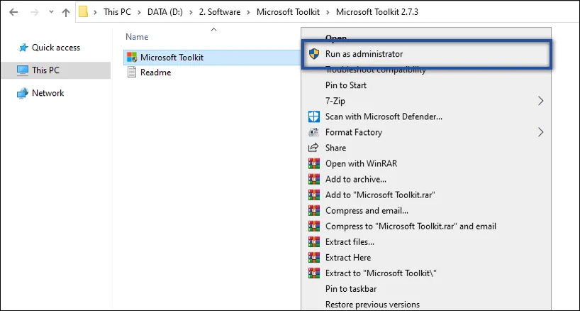 Step 2: Selanjutnya langsung saja klik kanan Microsoft Toolkit, lalu pilih Run as Administrator.