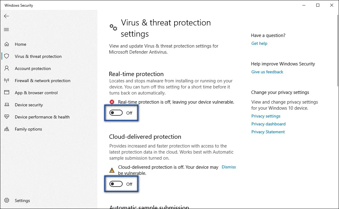 STEP 2: Selanjutnya silakan matikan Antivirus di PC atau laptop Anda. Buka Windows Settings » Pilih Update & Security » Windows Security » Pilih Virus & Threat Protection » Matikan Real-Time Protection dan lainnya.