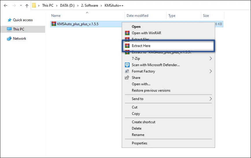 Step 4: Kemudian langsung ekstrak file KMSAuto++ yang tadi di download.