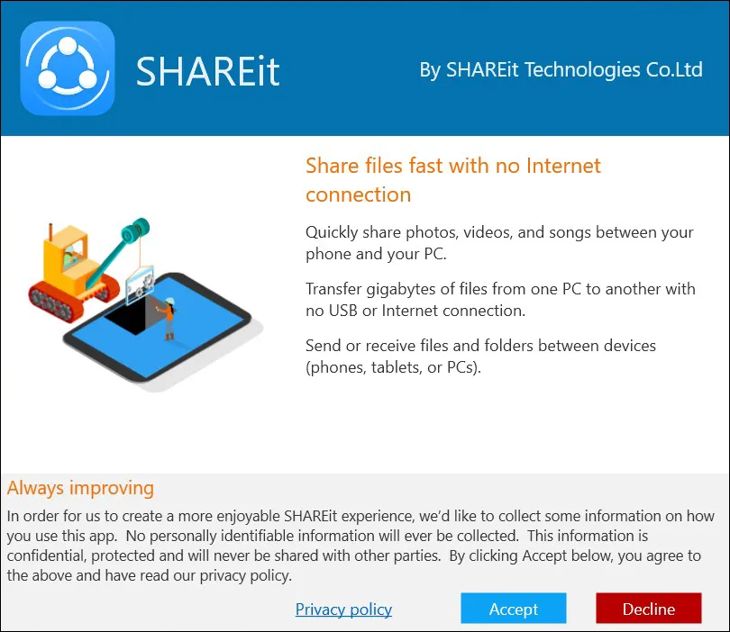 SHAREit adalah alat berbagi yang memungkinkan penggunanya untuk berbagi file antar perangkat secara nirkabel
