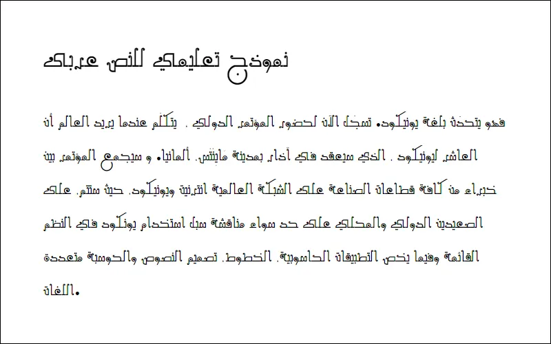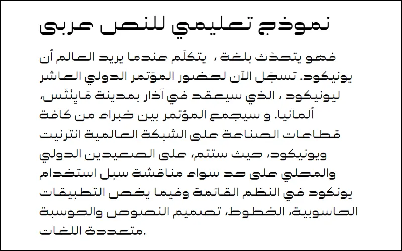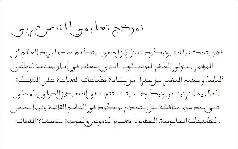 Sesuai dengan namanya, font Ramadhan Amazing adalah font yang biasa dipakai untuk membuat desain bulan Ramadhan. Karakteristiknya tipis dengan tambahan simbol titik pada beberapa karakter. Ini adalah salah satu font Arab paling di rekomendasikan.