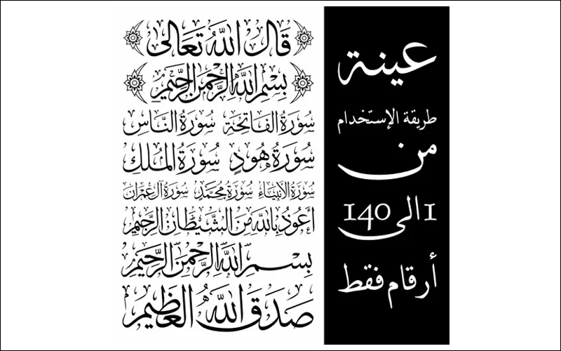 Sesuai dengan namanya, font Arab yang satu ini memiliki bentuk mirip seperti tulisan di Al-Qur’an. Selain itu, di font ini juga terdapat beberapa simbol khusus. Sehingga font Arab ini sering dipakai untuk menuliskan surah atau ayat Al-Qur’an.