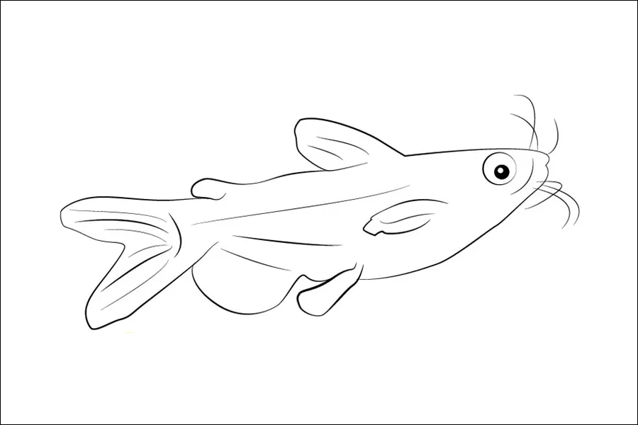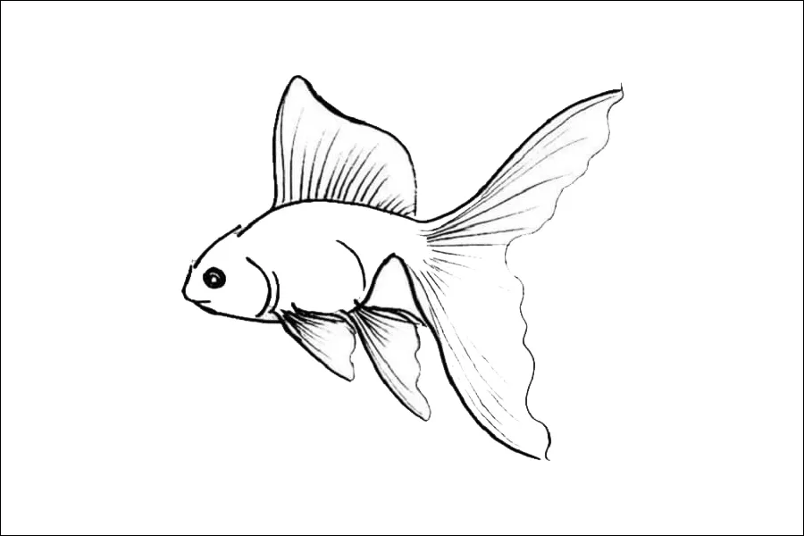 Langkah pertama adalah menggambar bentuk oval sebagai badan ikan, kemudian tambahkan ekor yang panjang. Gambar sirip di bagian atas dan bawah oval untuk membuat sketsa ikan yang mudah.