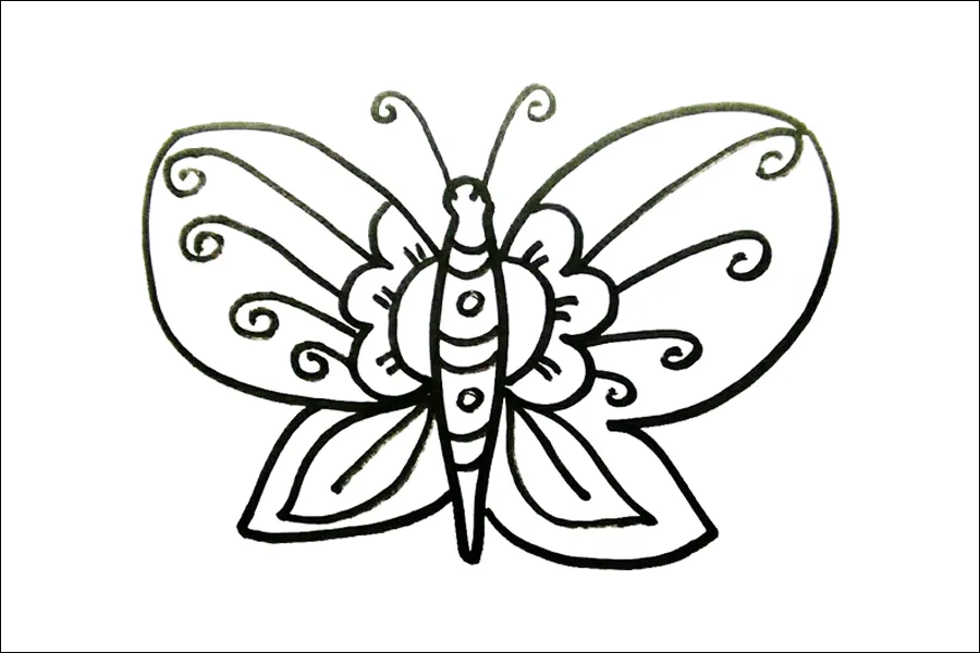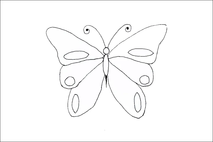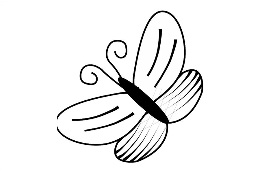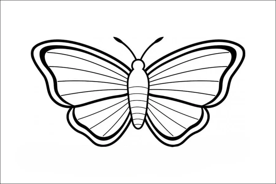 Untuk membuat sketsa kupu-kupu yang sederhana, anak-anak TK dapat memulai dengan menggambar dua sayap yang simetris dan menambahkan tubuh serta antena di bagian tengah.