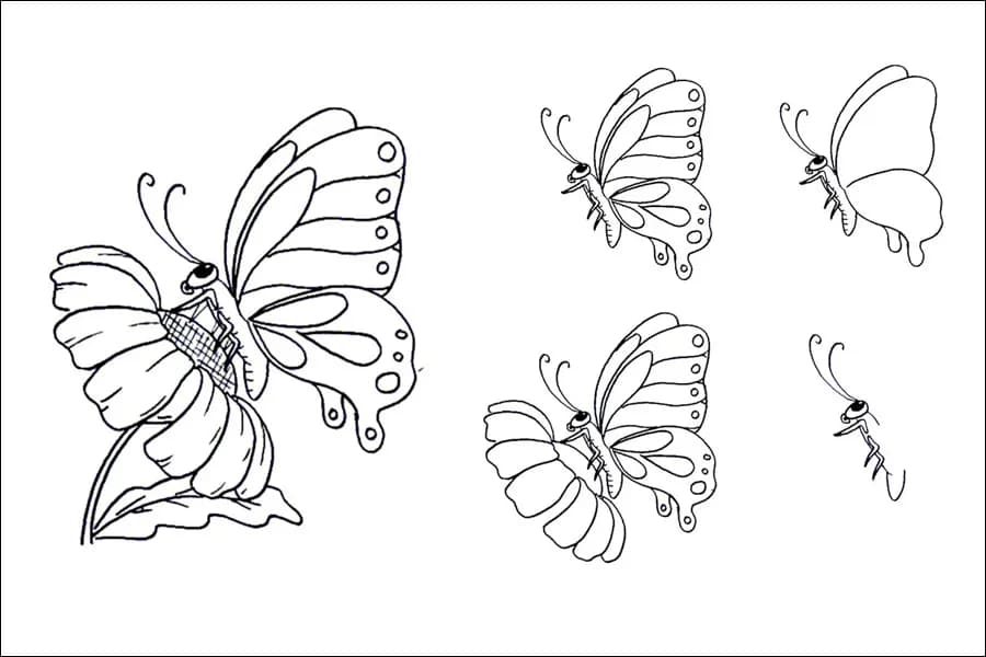 Sebaiknya anak-anak mengawali dengan garis-garis dasar yang sederhana, seperti bentuk oval atau bulat untuk tubuh dan sayap. Gunakan panduan simpel untuk membantu memahami proporsi dan letak elemen-elemen kupu-kupu.