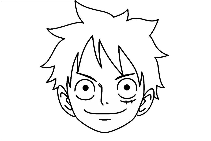 Untuk anak-anak TK, mulailah dengan menggambar bentuk dasar wajah Luffy yang sederhana, seperti lingkaran untuk kepala dan garis-garis untuk menentukan letak mata, hidung, dan mulut atau bisa juga dengan menggambar Luffy versi Chibi.