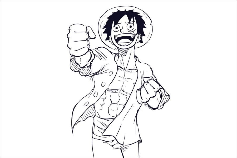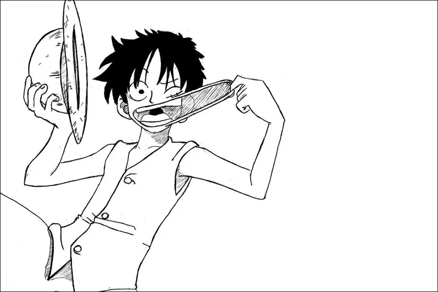 Siapa yang tidak kenal dengan Monkey D. Luffy, tokoh penuh semangat dari serial anime dan manga terkenal, One Piece? Dia adalah seorang bajak laut yang bercita-cita menjadi Raja Bajak Laut dan menemukan harta legendaris, One Piece. Dengan senyumnya yang tak tergoyahkan dan semangatnya yang tak terbatas, Luffy adalah pilihan sempurna untuk menjadi subjek sketsa yang menyenangkan.