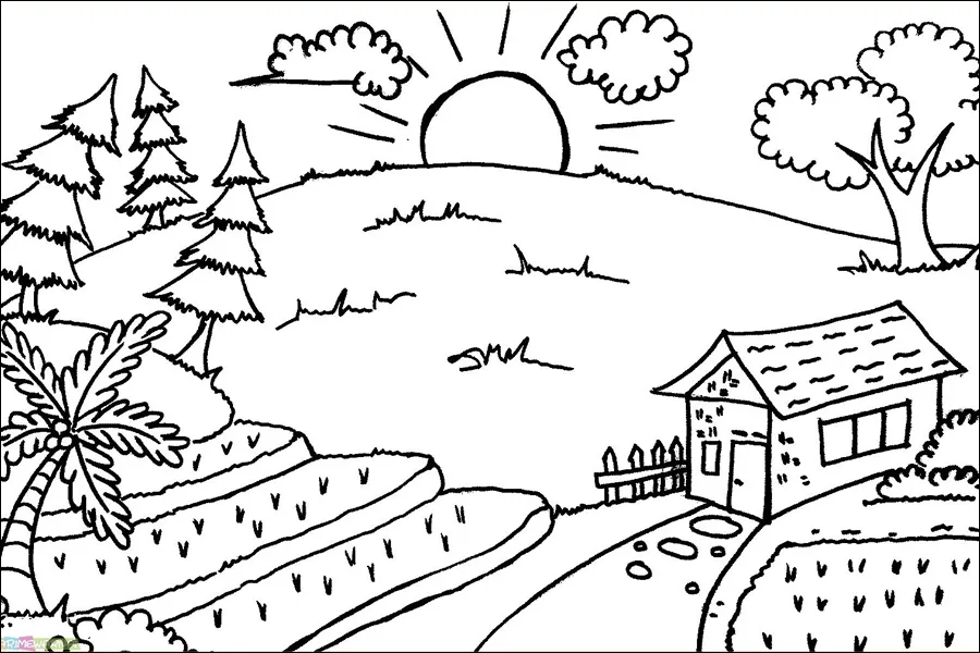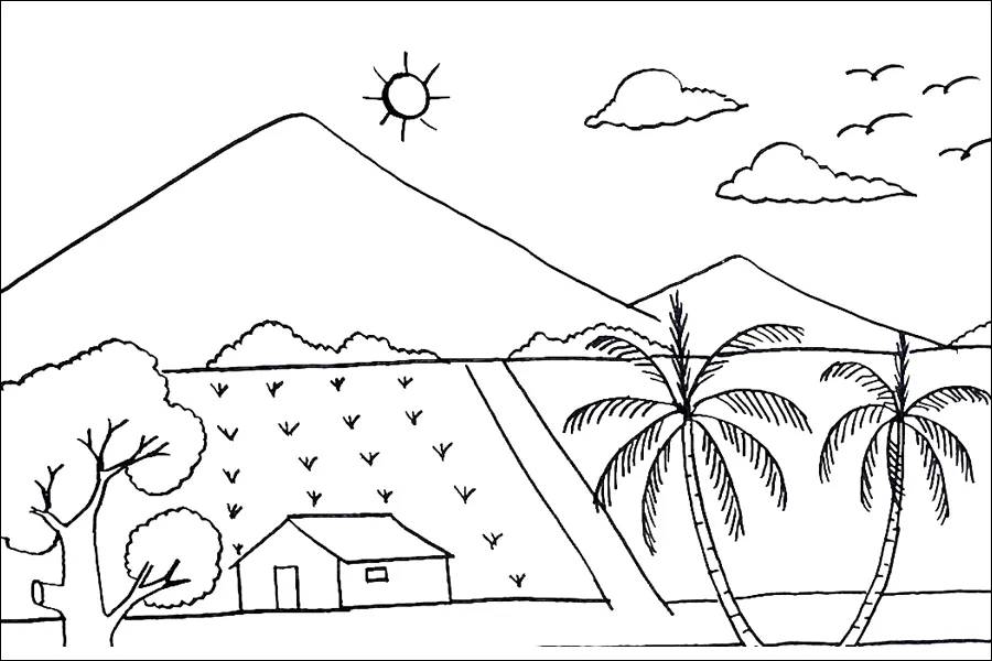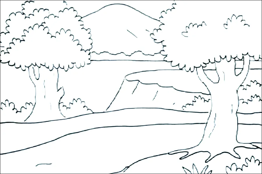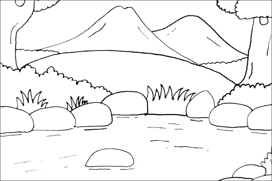 Berikut kumpulan sketsa pemandangan alam simple yang mudah digambar dan ditiru anak TK, SD, SMP, SMA!