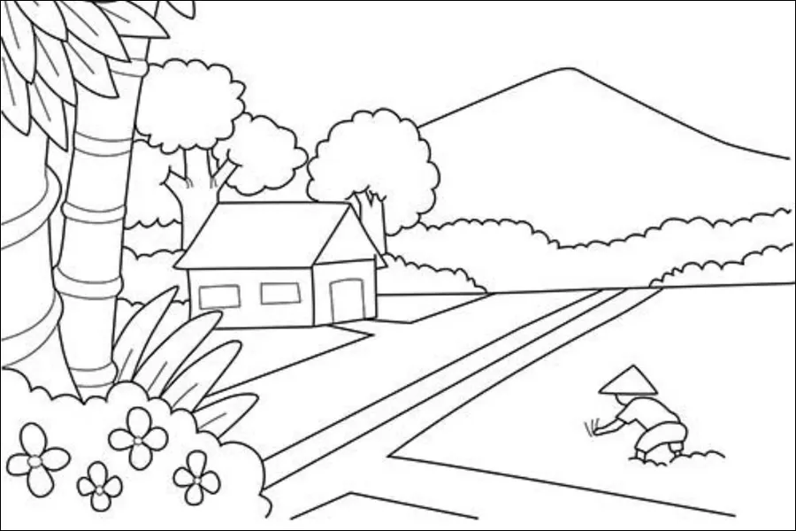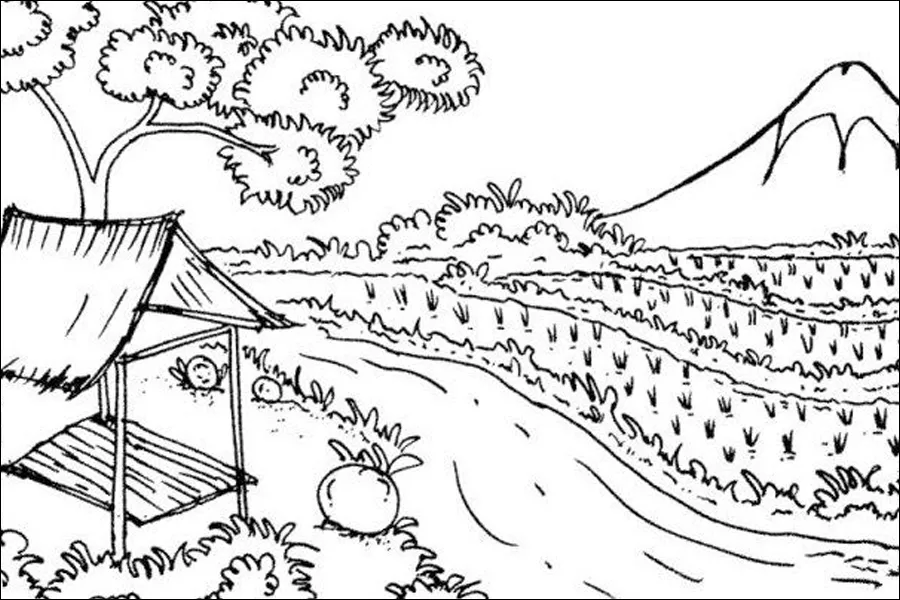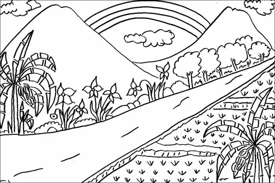 Gambar sketsa pemandangan alam sering menampilkan pegunungan dan pedesaan karena keindahan alam ini memberikan kesan damai dan menenangkan. Pegunungan menambah elemen dramatis, sementara pedesaan menciptakan nuansa tradisional dan kehidupan sehari-hari yang sederhana.