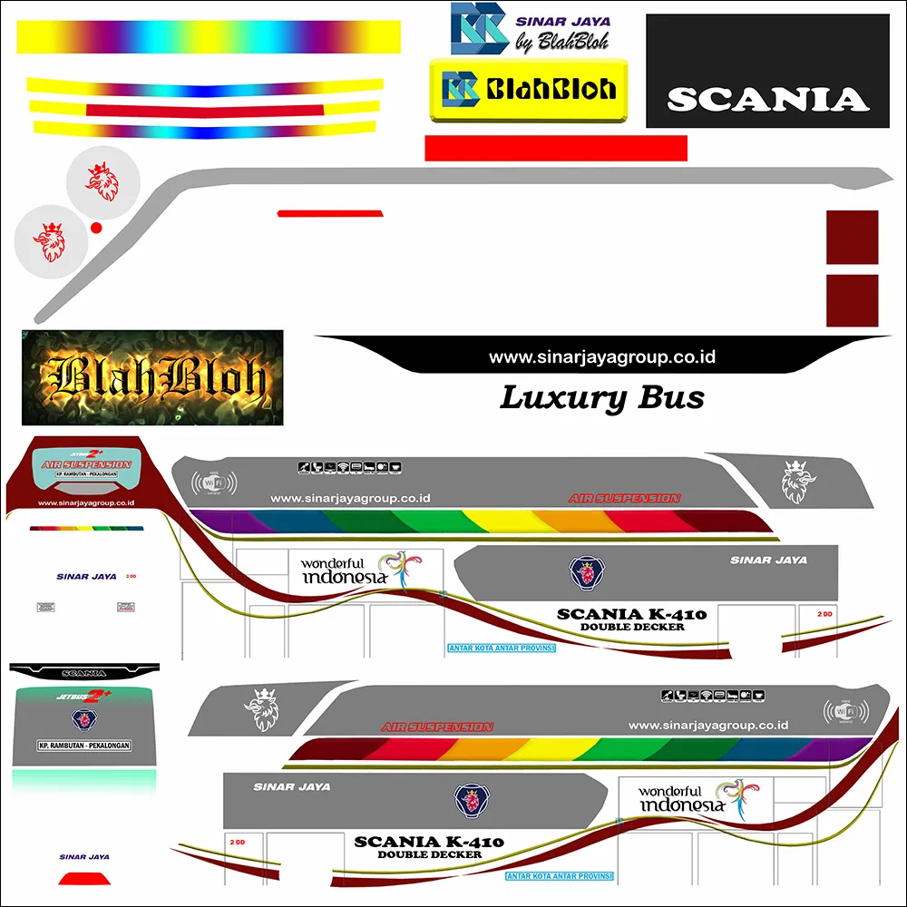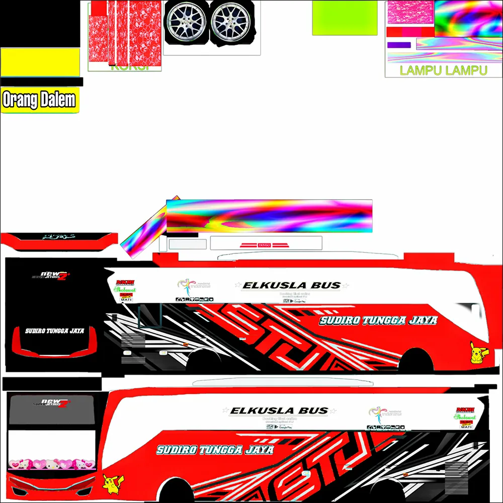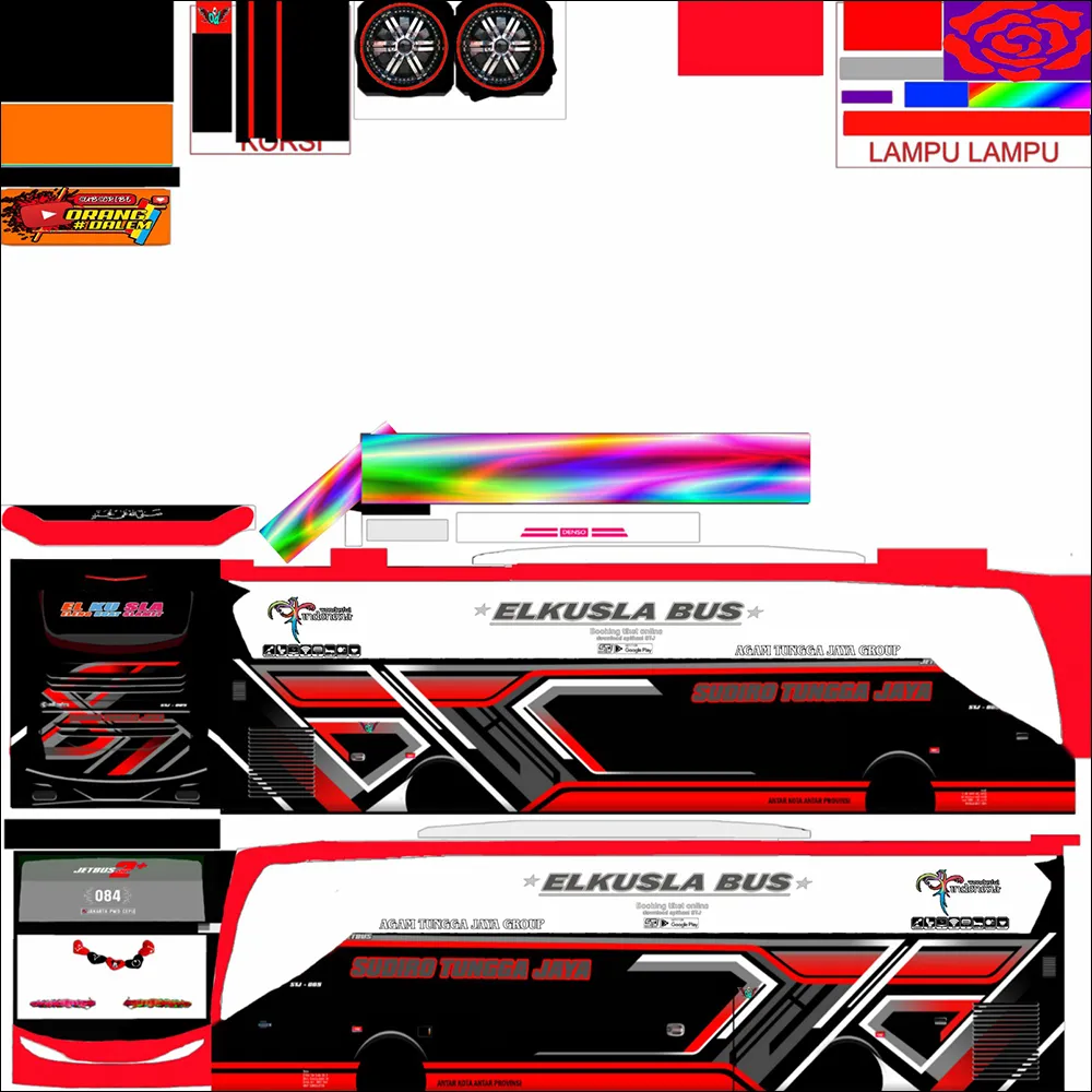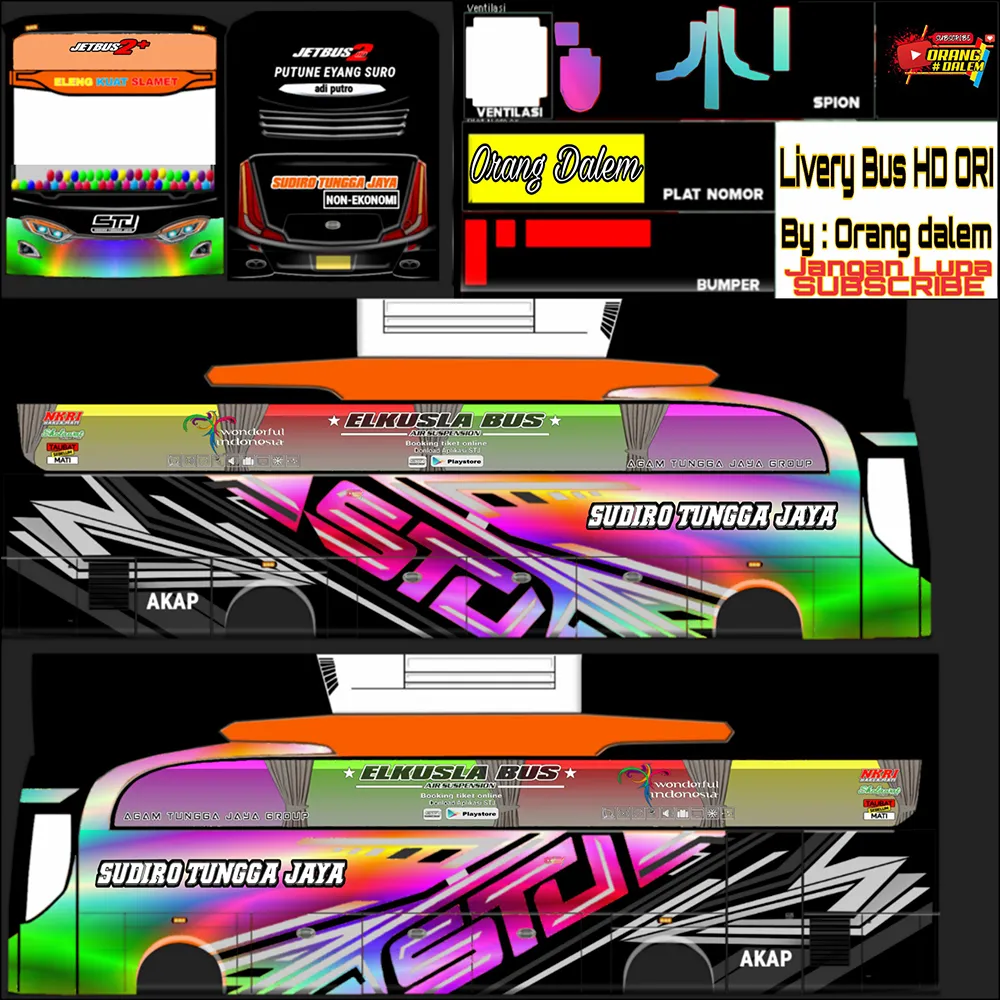 Kumpulan Livery BUSSID Full Strobo, Orange, Merah, Biru, Pelangi, Paling Jernih!