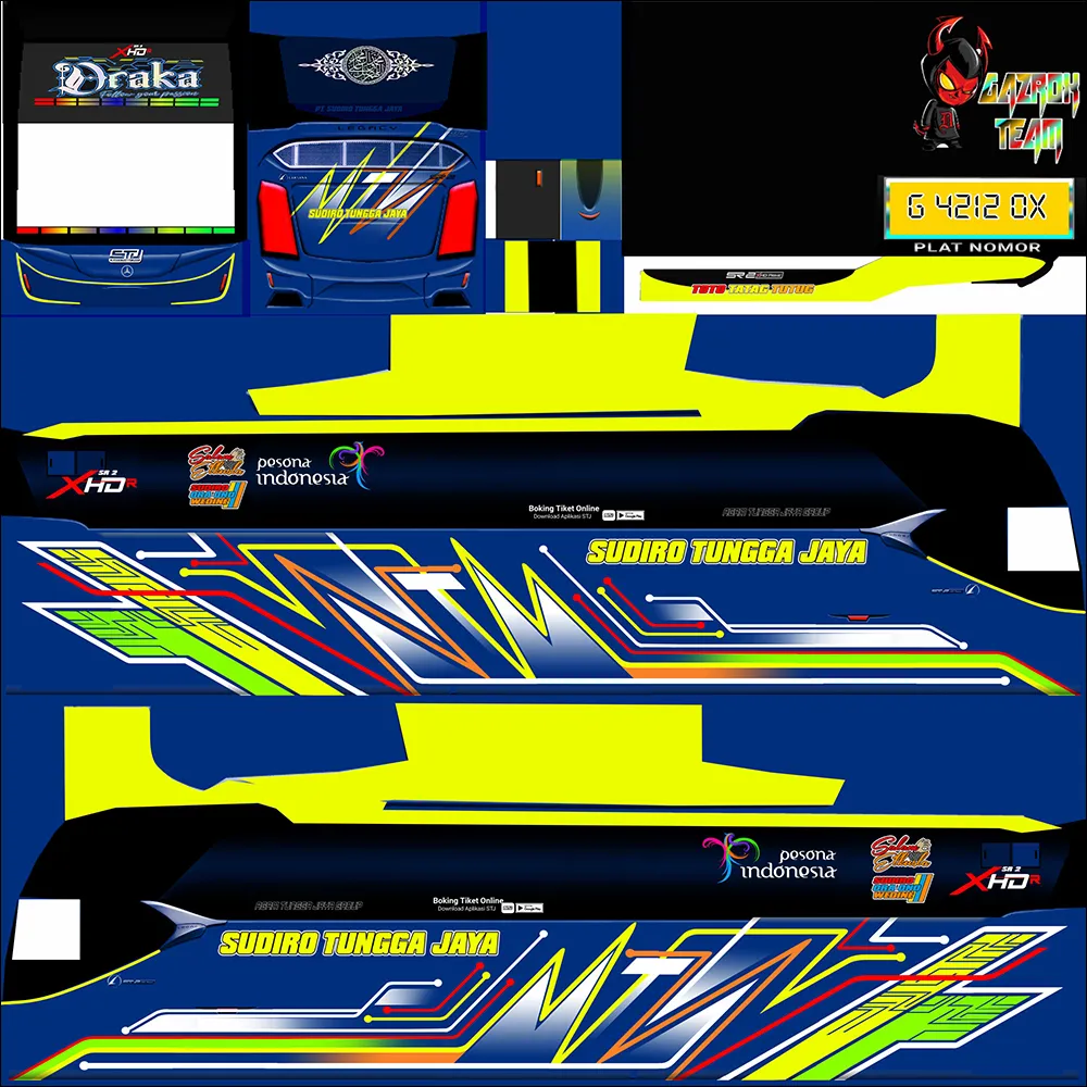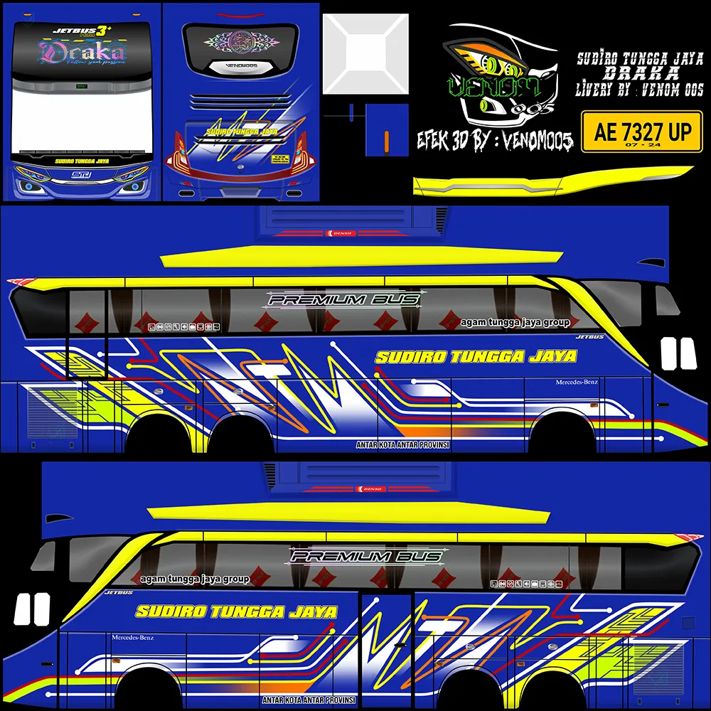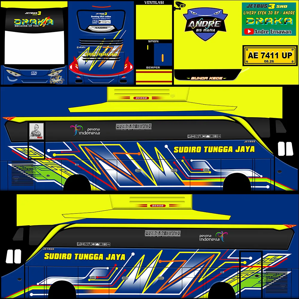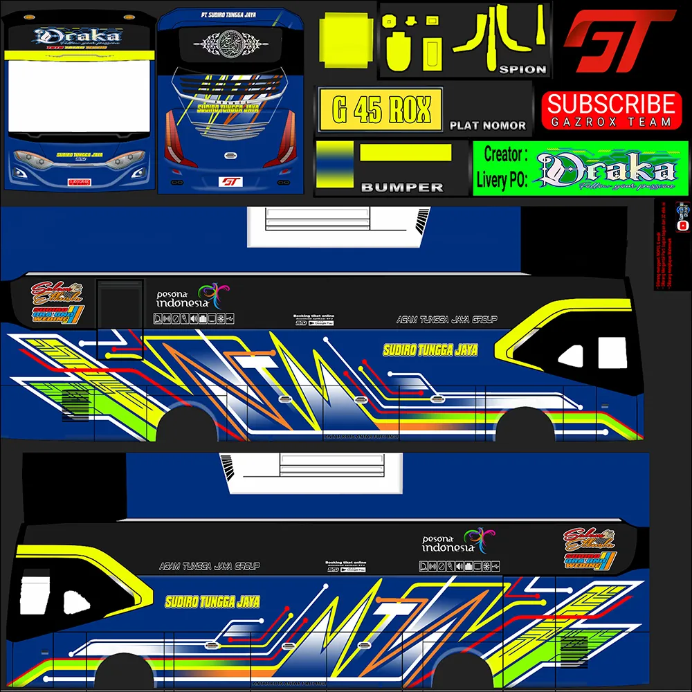 Sudiro Tungga Jaya Draka atau dikenal dekat dengan nama STJ Draka, merupakan salah satu unit bus premium dari PO Sudiro Tungga Jaya yang memiliki jurusan Pondok Pinang – Tawangmangu. Bagi Anda yang sering melewati di daerah tersebut pasti langsung bisa mengenal bus buatan Karoseri ini dari nama DRAKA di bagian kepala bus nya. Bahkan kita langsung bisa mengenalinya dari warna bus yang terpadu antara biru dan kuning metalic yang membuatnya ikonik. Mungkin tampilan tersebut juga lah yang membuat bus Draka dijadikan sebagai salah satu Livery yang paling dicari dalam BUSSID.