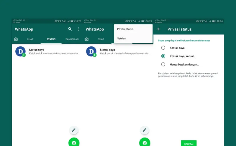 Untuk bagian ini, Anda perlu cek pada HP teman Anda secara langsung yang sekiranya Anda tidak bisa melihat statusnya. Karena bisa jadi pengaturan privasi disembunyikan pada kontak atau orang-orang tertentu, termasuk Anda. Untuk memahaminya, Anda bisa baca penjelasan berikut ini.