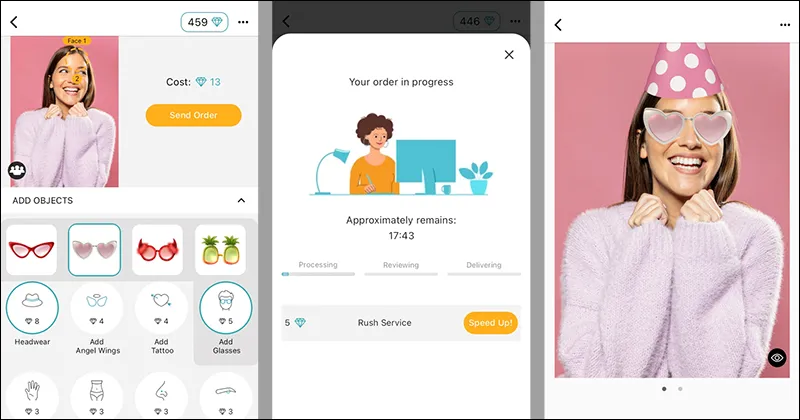 Para profesional sejati bekerja pada foto Anda untuk memastikan bahwa semuanya terlihat alami dan realistis. Selain itu, Anda akan mendapatkan foto yang diedit secara profesional dan menghibur hanya dalam 15 menit. Tidak peduli apakah Anda ingin menambahkan stiker, membuat sketsa lucu, atau bertukar wajah, aplikasi ini memungkinkan Anda melakukan semua hal tersebut.