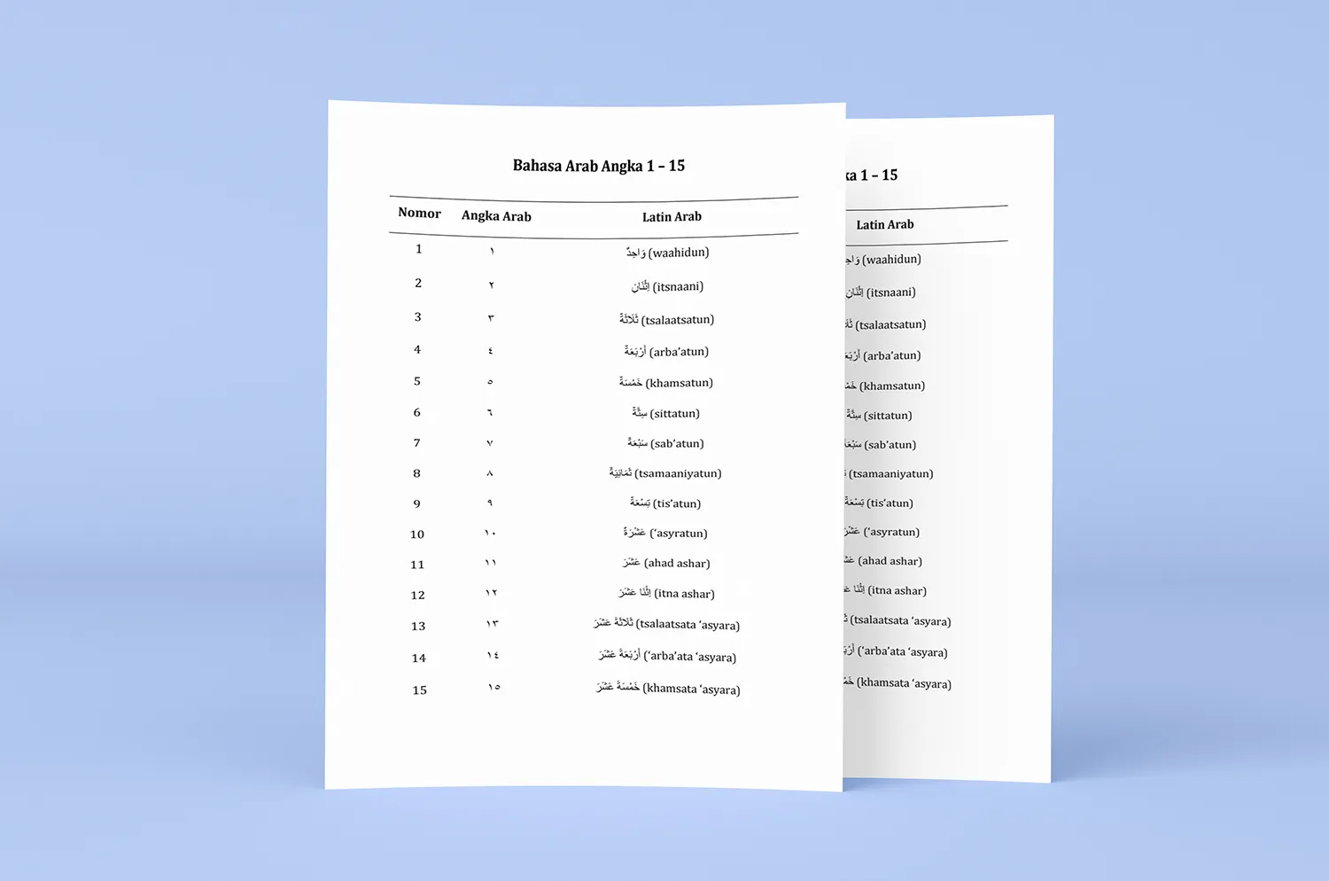 | Nomor | Angka Arab | Latin Arab |