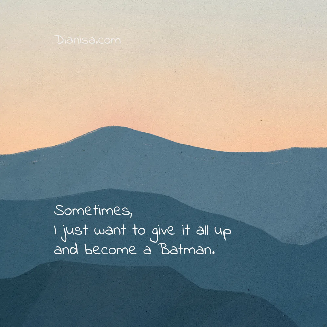 Sometimes, I just want to give it all up and become a Batman. (Terkadang, aku hanya ingin menyerah pada semua ini dan menjadi Batman saja.)