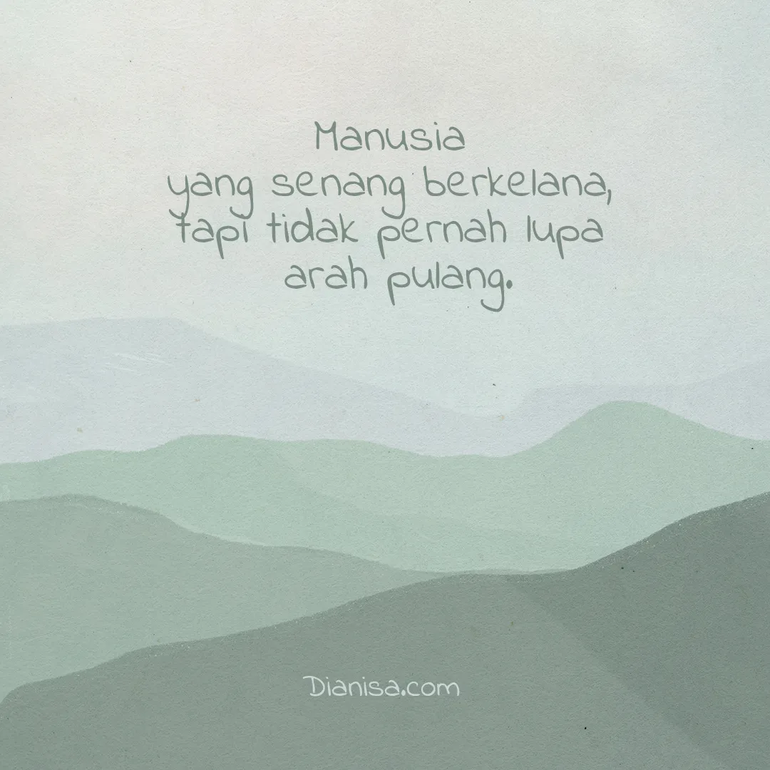 Manusia yang senang berkelana, tapi tidak pernah lupa arah pulang. (A person who loves to wander but never forgets the way back.)