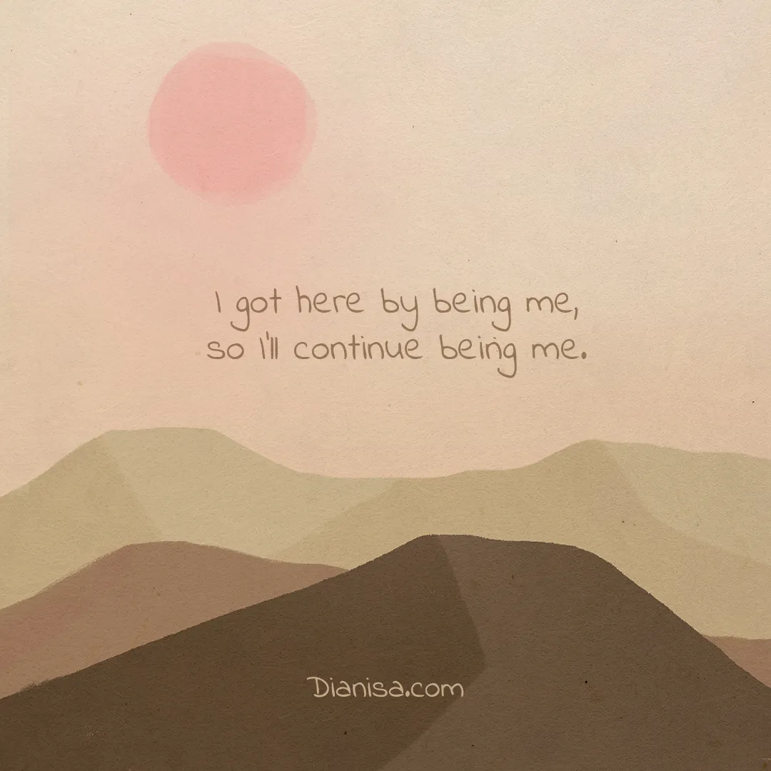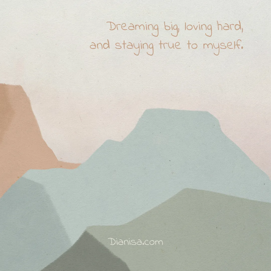 Dreaming big, loving hard, and staying true to myself. (Bermimpi besar, mencintai dengan tulus, dan tetap setia pada diri sendiri.)