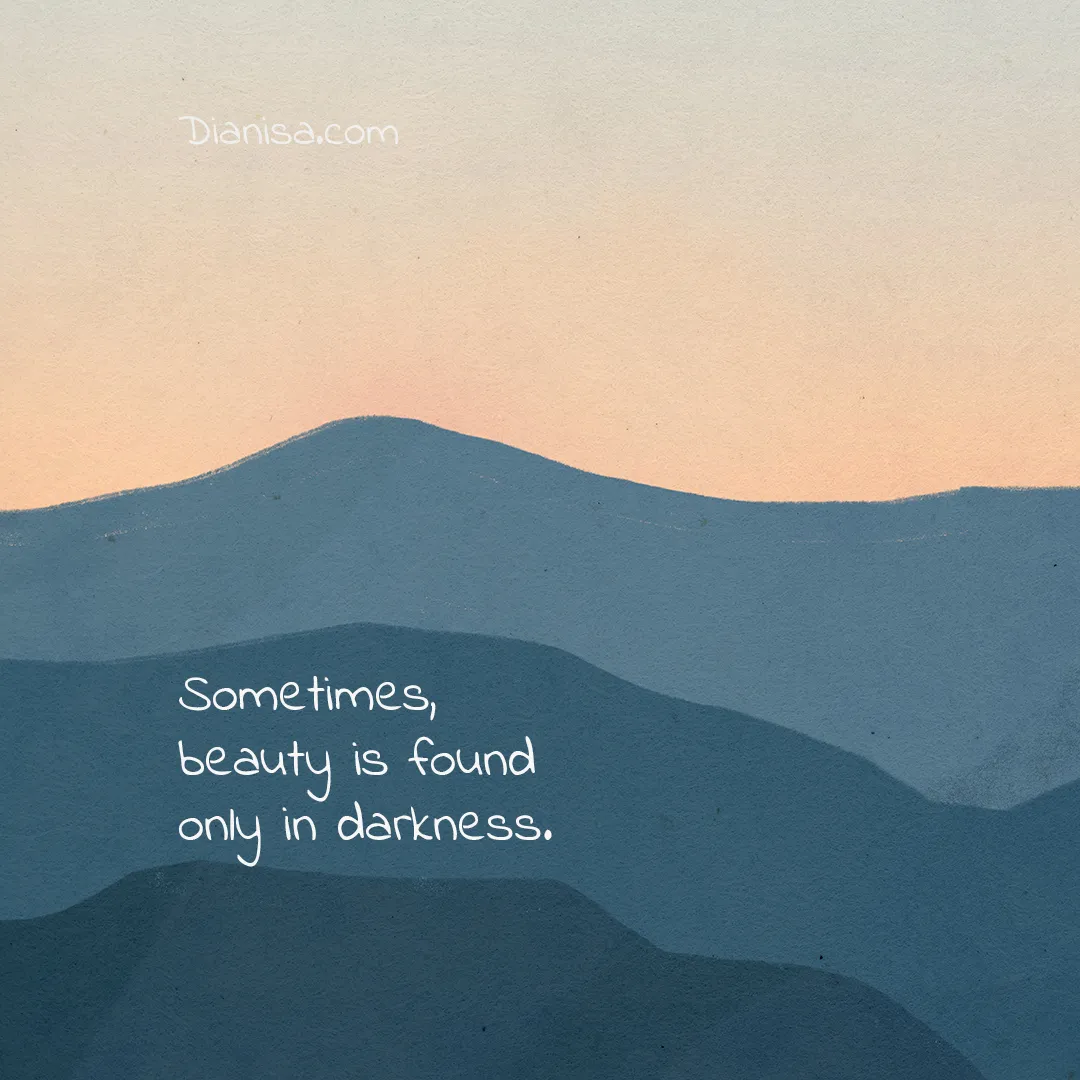 Sometimes, beauty is found only in darkness. (Terkadang, keindahan hanya ditemukan dalam kegelapan.)