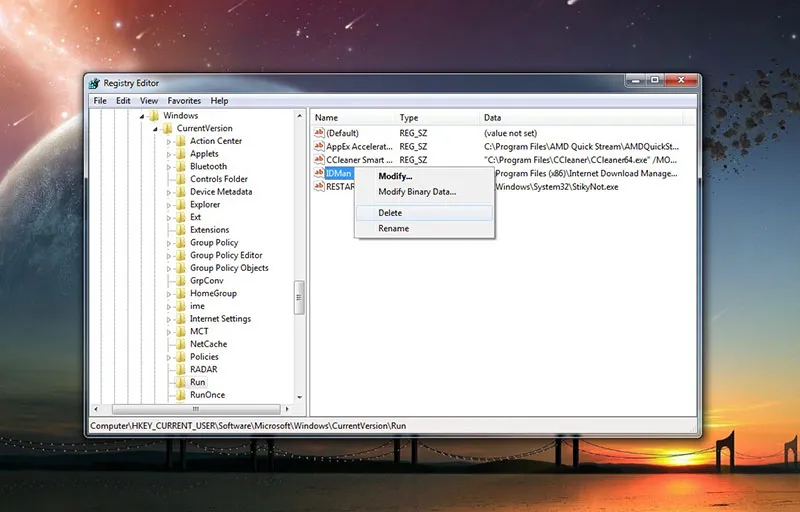 HKEY_CURRENT_USER » Software » Microsoft » Windows » CurrentVersion » Run