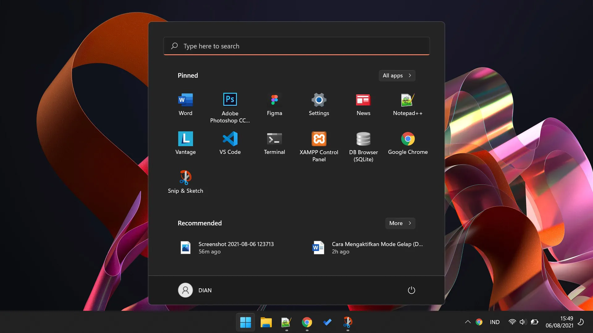 4. Dengan begitu, antarmuka Windows 11 berubah menjadi gelap seperti yang terlihat pada gambar di bawah ini.