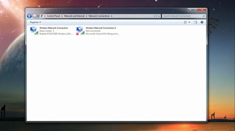 Dalam beberapa kondisi tertentu, terkadang pengguna tidak mengetahui bahwa Adapter WiFi pada laptop dalam keadaan nonaktif. Tentu hal ini dapat menyebabkan laptop tidak dapat connect WiFi. Untuk itu, silakan cek terlebih dahulu pengaturan Network Connections pada Control Panel.