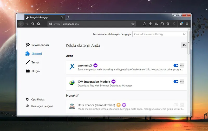 Add-ons merupakan fitur atau program sederhana pihak ketiga di browser yang berguna untuk memberikan efektivitas terhadap penggunanya. Setiap add-ons memiliki fitur dan fungsi sesuai dengan kegunaannya. Dalam memasang Add-ons sendiri, Anda juga perlu memperhatikan sumber daya perangkat. Jika tidak, maka aktivitas browsing Anda akan terasa berat dan lemot. Jika memang Anda memasang banyak add-ons, sebaiknya hapus add-ons yang sekiranya tidak dibutuhkan dan pasang add-ons yang Anda butuhkan saja.