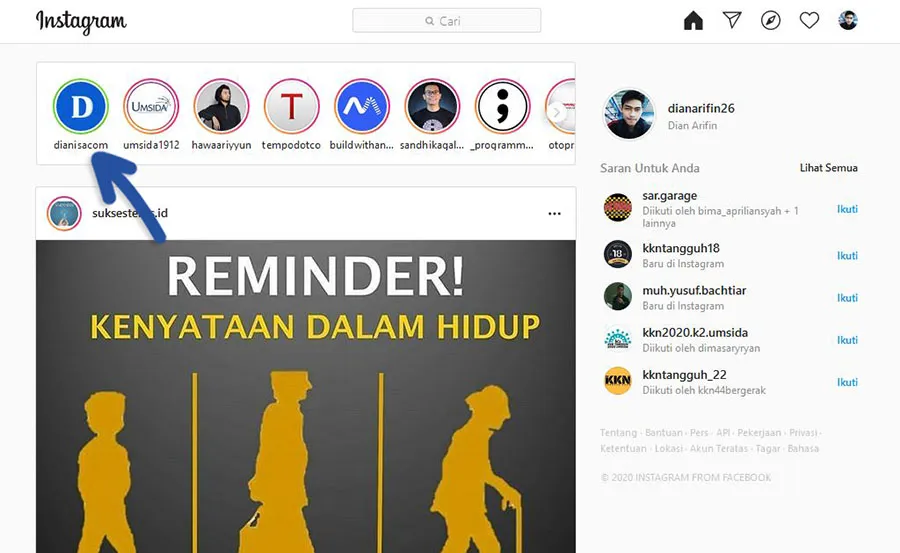STEP 2: Opsi berikutnya, anda bisa langsung kunjungi Profil pengguna tersebut. Tap bagian Mengikuti » pilih Senyapkan » kemudian aktifkan bagian Cerita. Dengan begitu, anda tidak lagi melihat ceritanya di Beranda.