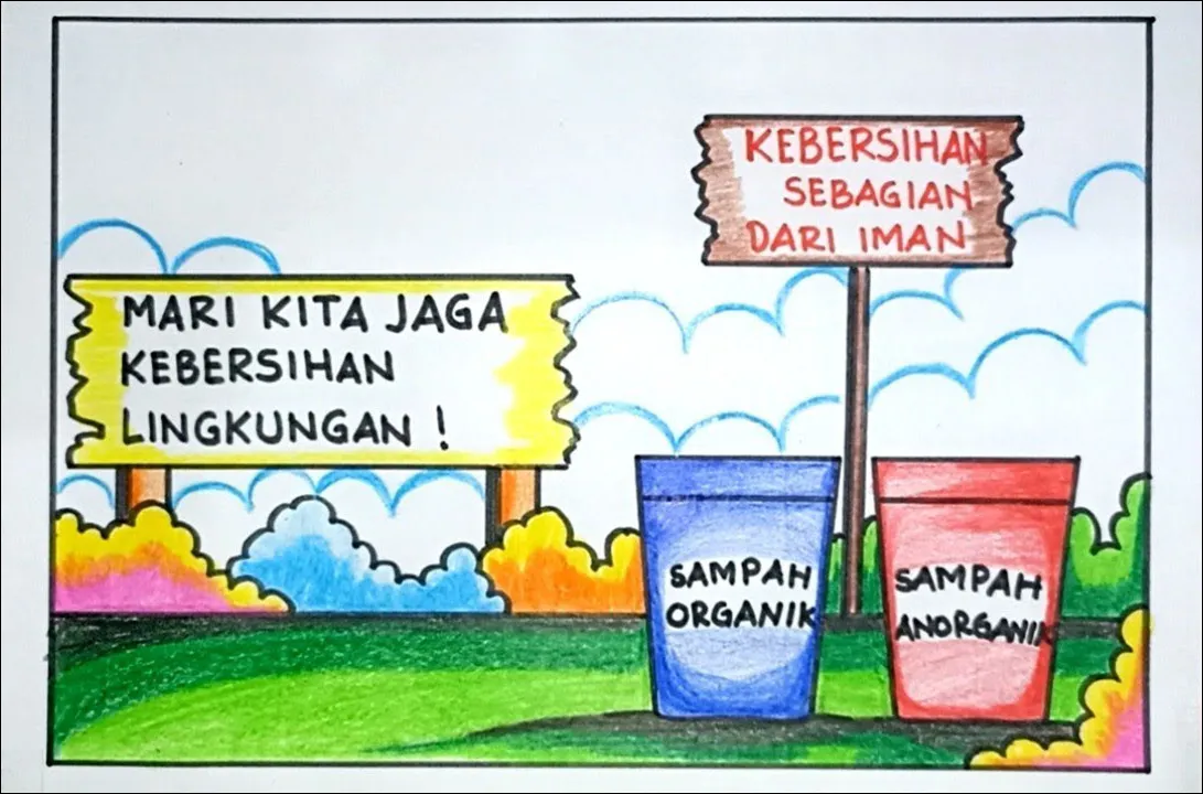 Berikut kami rangkum daftar gambar poster kebersihan keren dan simple yang mudah digambar anak TK, SD, SMP, SMA