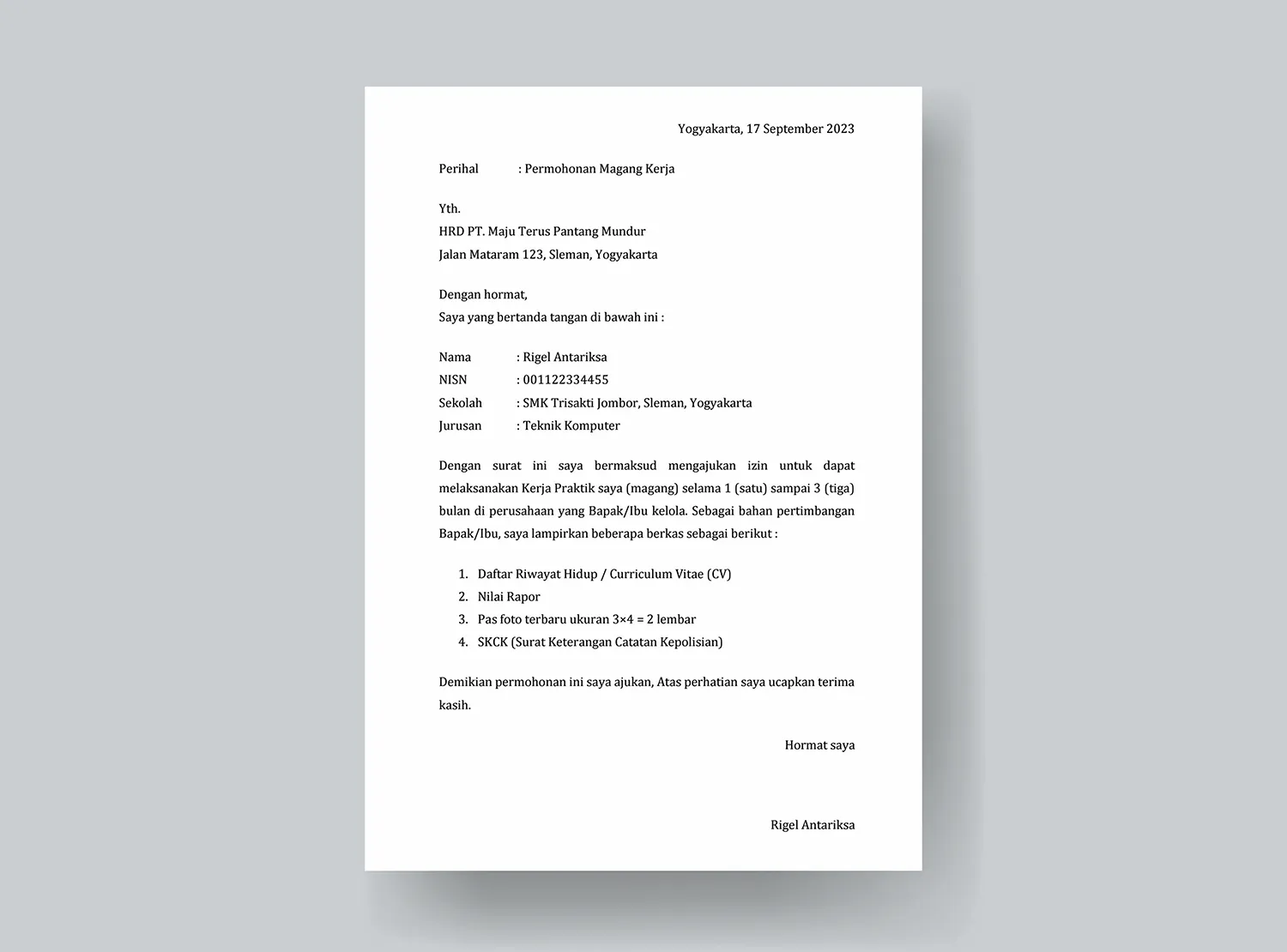 Berikut beberapa contoh surat lamaran magang yang bisa Anda jadikan referensi